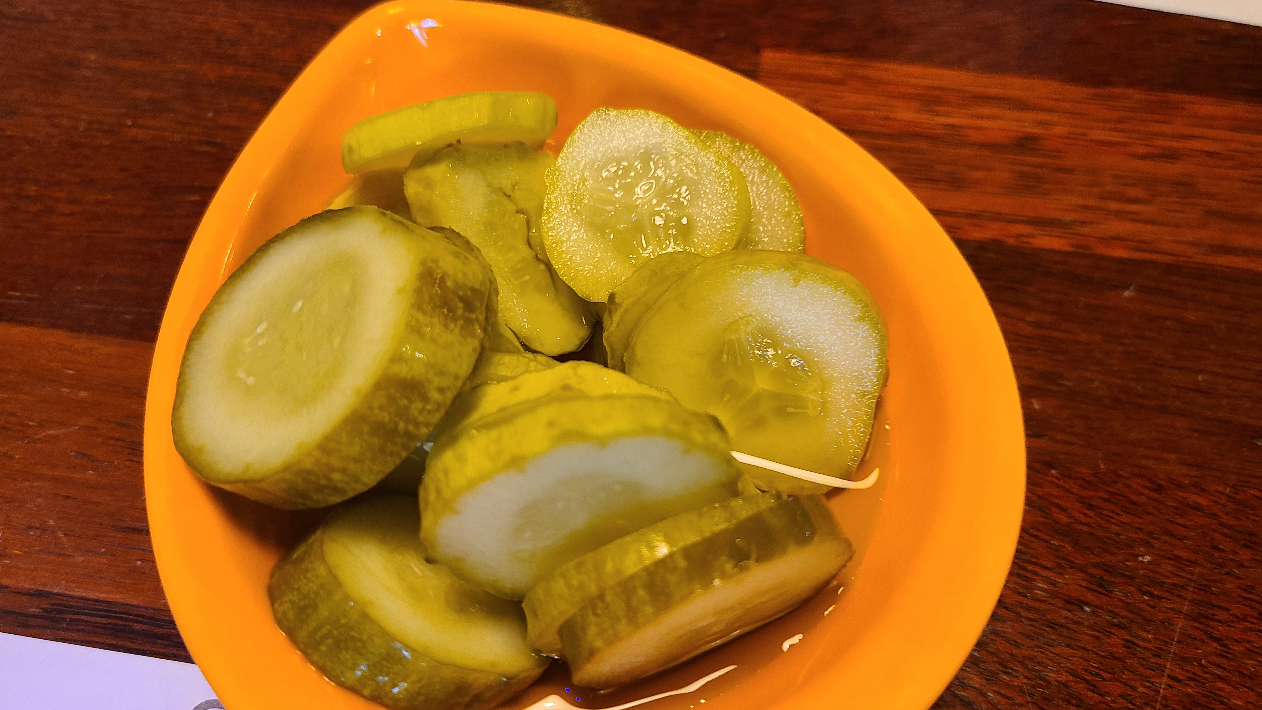 피클이 나왔어요. 저녁시간에 가서 피자가 구워지기를 기다리다 먹다보니 피클도 맛이 있네요.