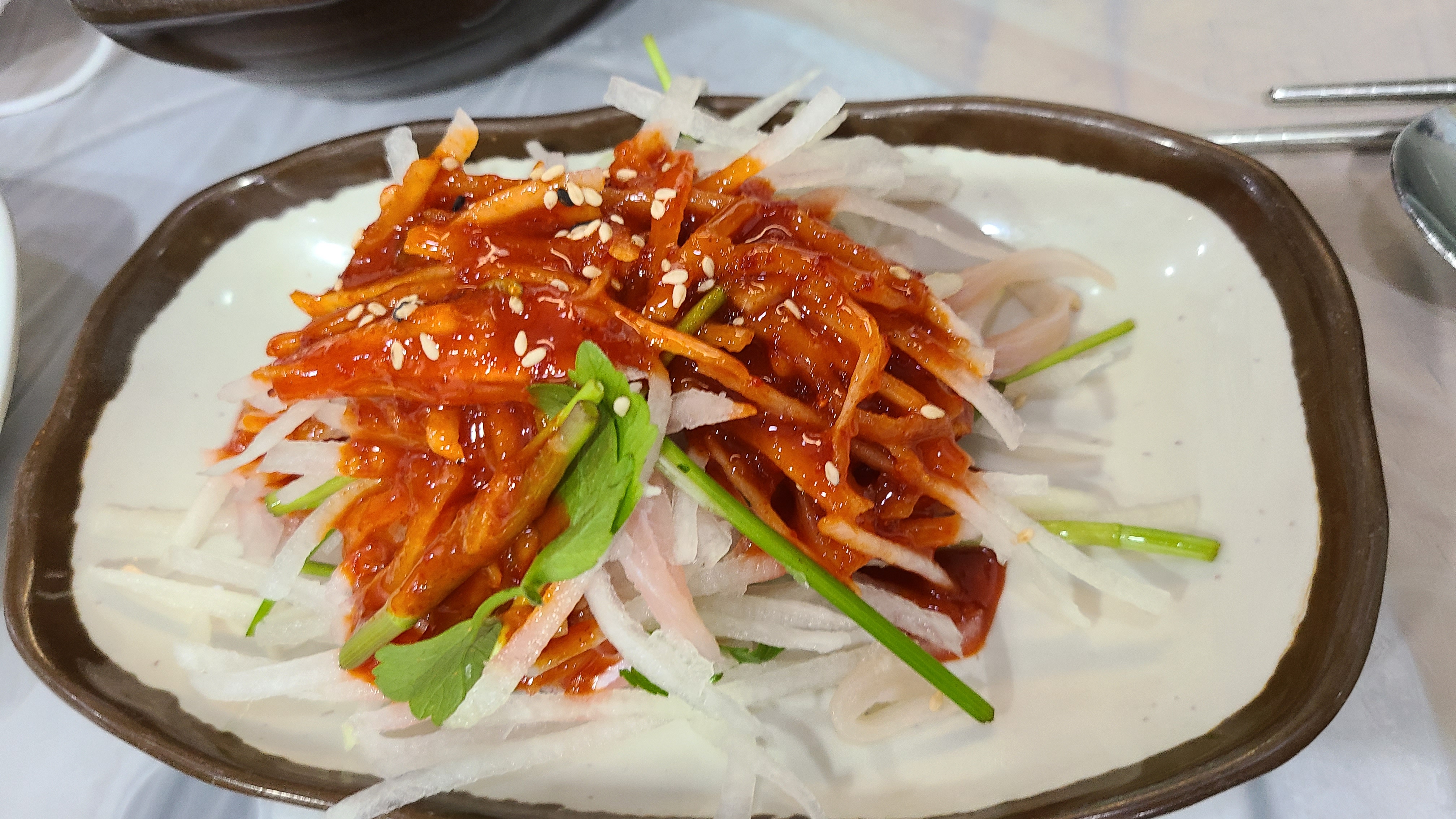 집에서 즐겨 먹는 반찬이 아니기에 식당에 왔을 때 한 번씩 먹습니다.