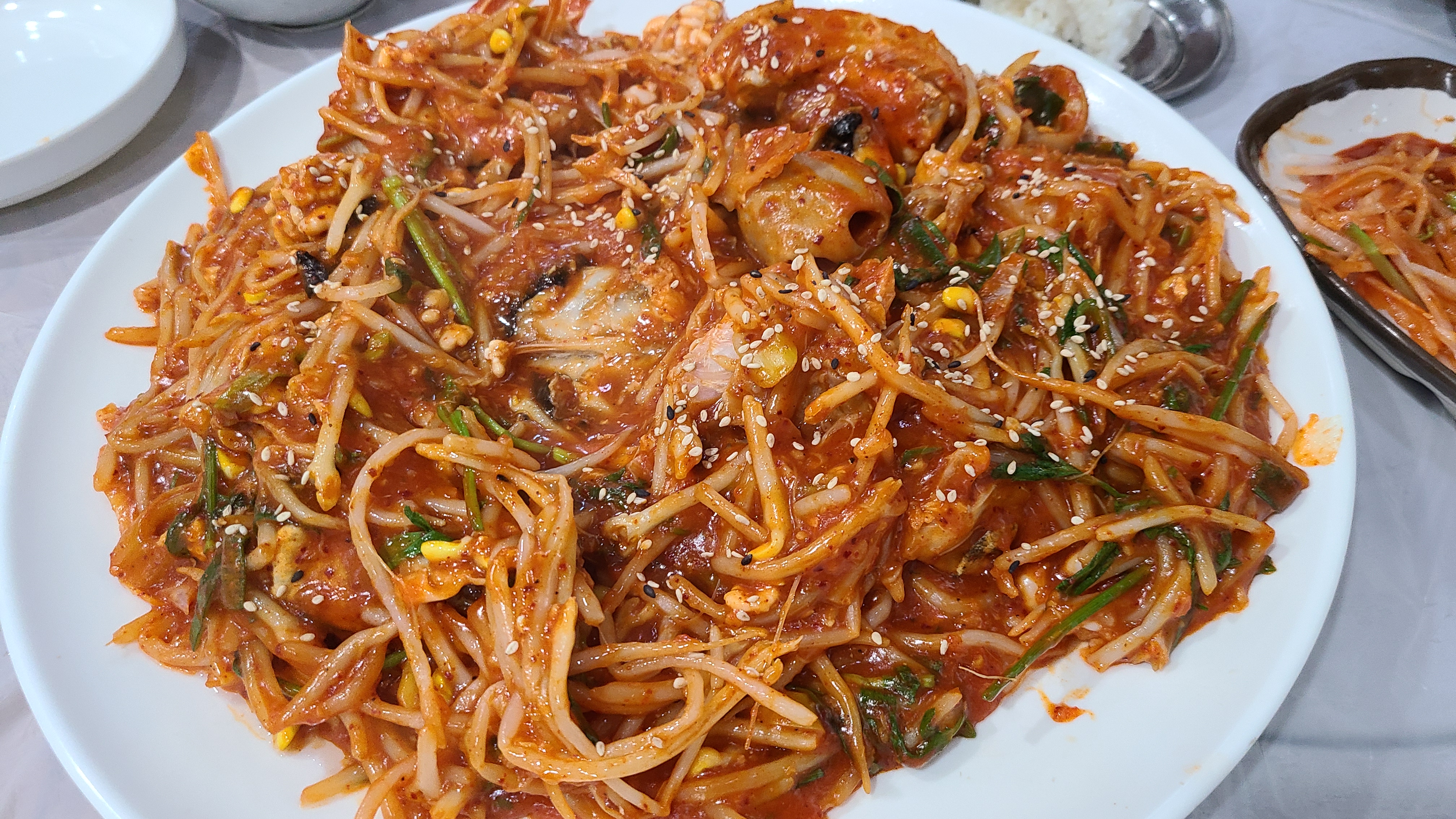 아삭한 콩나물에 매콤하지만 맛있는 원아구찜입니다.