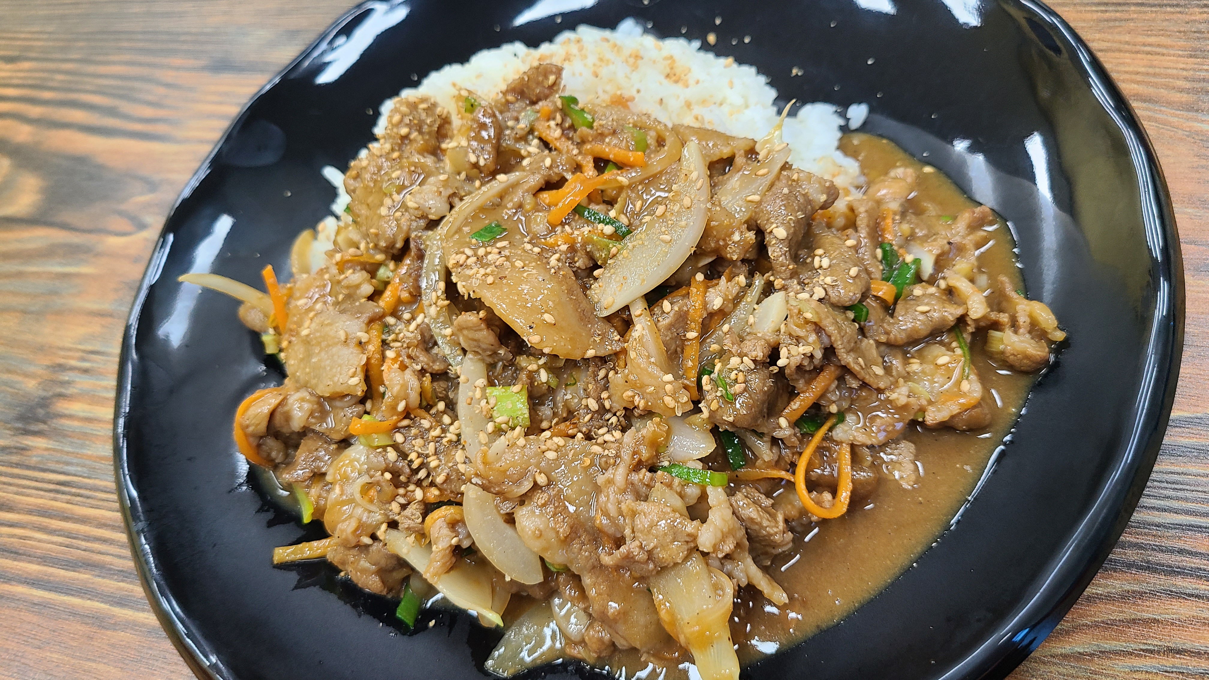 빨간 제육덮밥이라 생각을 했는데 고추장이나 고춧가루가 들어가지 않은 돼지불고기입니다.