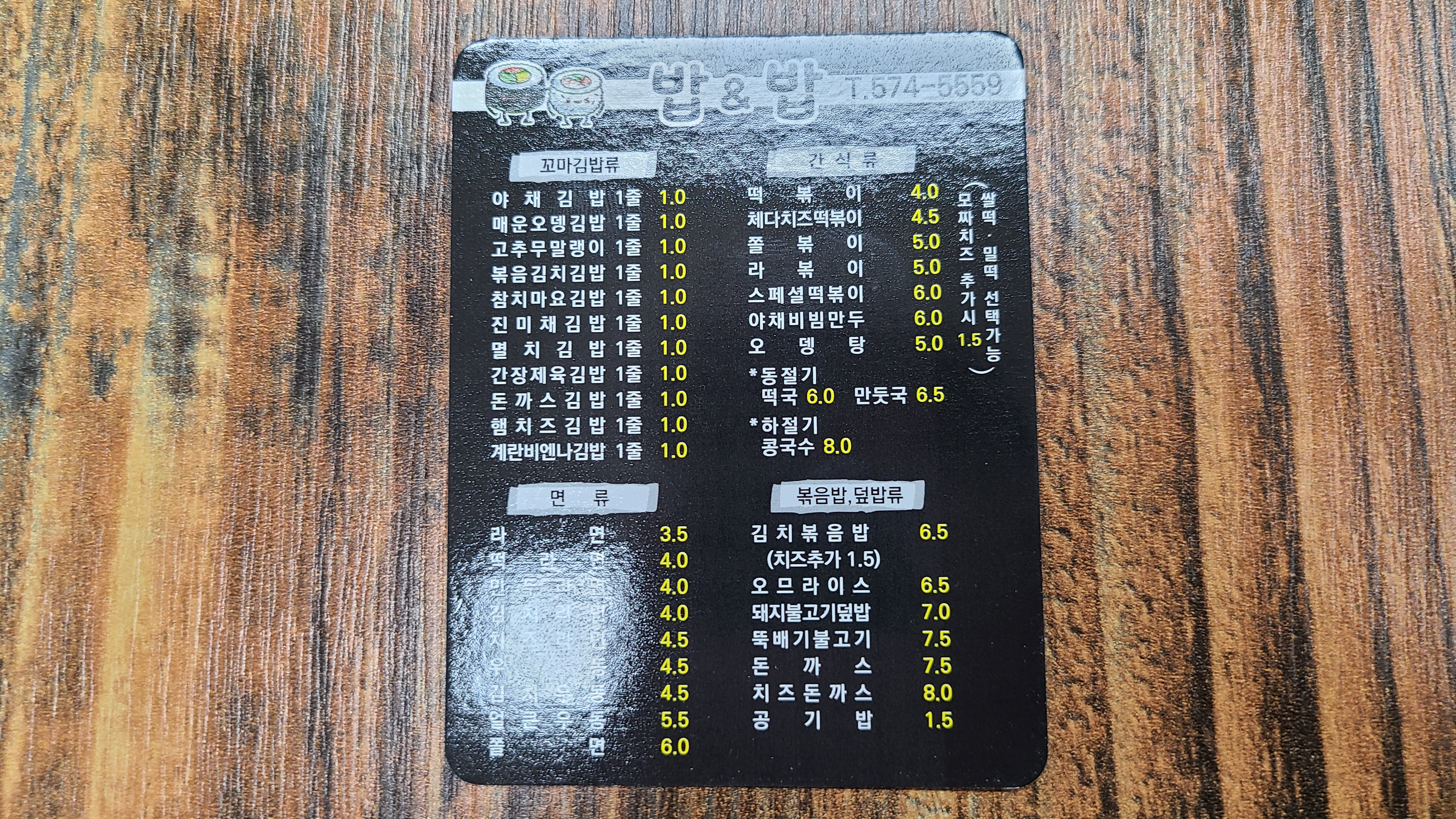 주메뉴는 다양한 꼬마김밥, 면류, 간식류, 볶음밥, 덮밥류가 있었습니다.