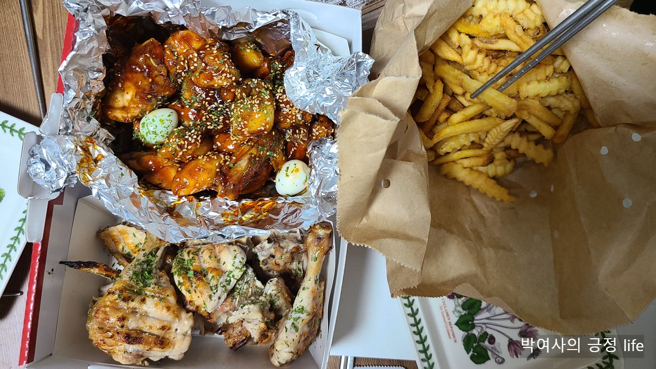 의령 꾸브라꼬 숯불 두마리치킨 솔직후기입니다.