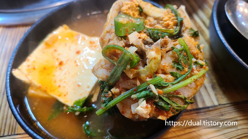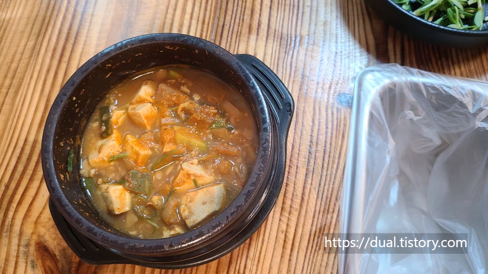 동태찌개를 보니 동태가 2마리 들어가 있고 두부도 정말 맛있습니다. 남편은 동태찌개가 맛있다며 반주를 시켜서 먹었습니다.