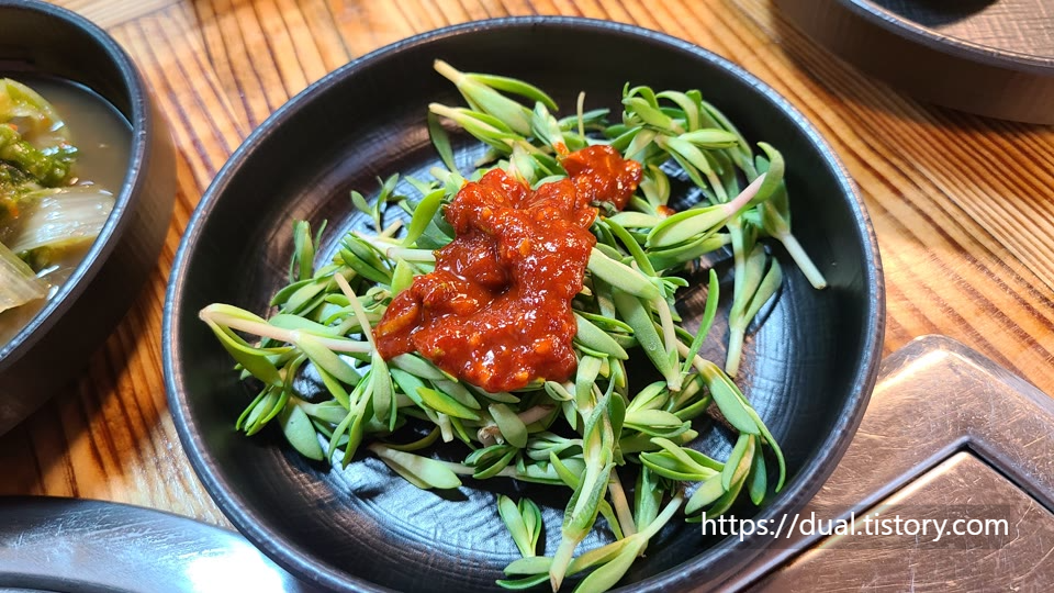 돈나물이 나왔습니다. 남편이 좋아하는 반찬이었습니다.